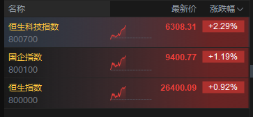 港股持续走强,科指涨幅扩大至2%,恒指涨超0.92%;科指成分股中,华虹半导体涨超8%股价创新高东信证券,中芯国际涨超7%股价创新高,阿里涨超6%,快手涨超4%,蔚来涨超3%,美团、京东涨超2%。